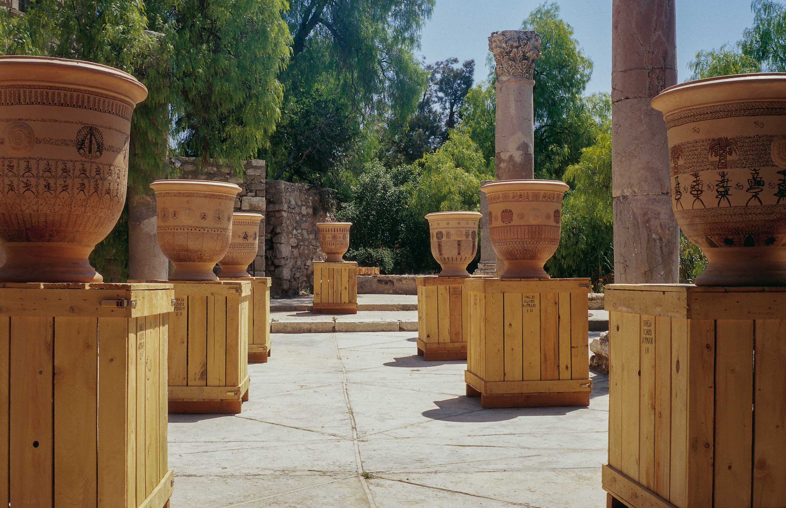 Lettres d’Argile : Hommage à Ibn ’Arabi (Letters of Clay: Homage to Ibn ’Arabi) (1998-1999), Espace Gard, Nîmes, France, touring to Institut Français and Darat al-Funun, Amman, Jordan; Institut Français, Damascus, Syria; Al-Mustansiriya Madrasah, Baghdad, Iraq; Institut Français, Ribat de Sousse, Tunisia; National Francophone Multimedia Library of Limoges, France; Gallery Isma, Algiers, Algeria; Museum of Contemporary Art, Caracas, Venezuela; Embassy of France, Algiers, Algeria; Gallery A. Gorgi, Sidi Bou Saïd, Tunisia; Institut Français, Tunis, Tunisia