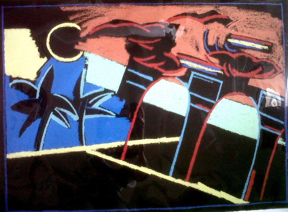 Elisabeth Lalouschek’s early signature works consisted of monumental figures, superimposed onto a frenzied landscape of architectural forms and dynamic painterly expressions. The bodies, with their archetypal human presence, carried a multitude of references, from Greek mythology to dystopian film. The early 1990’s saw a major shift in Lalouschek’s practice with a focus on abstract compositions. The result being more fluid and reflective work, exploring the making of space and time.