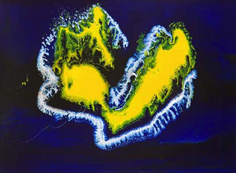 Her work is inspired by the beauty of the East Cape and by the fast disappearing traditional beliefs, with darker references to domestic violence and harsh social conditions experienced by many Aboriginal peoples in isolated communities. Her lucid visions have been described as pieces where the ‘sunshine grabs every colour in the rainforest, low mountain ranges, sandy beaches and deep sea, and illuminates it like a light box.’ (Kathleen Noonan. September 30, 2006. The Courier Mail)