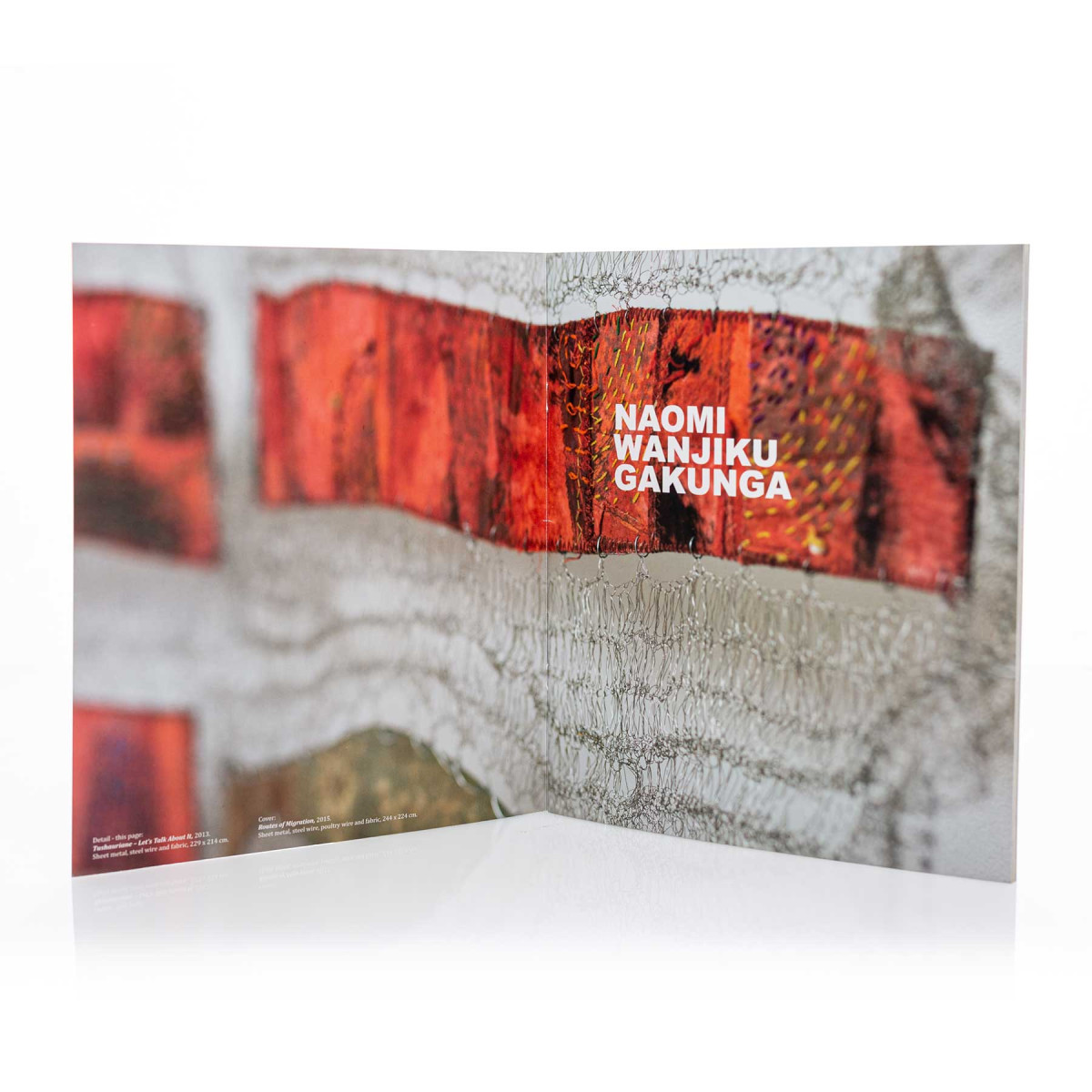 Gakunga’s works are predominantly wall-hanging sculptures ingeniously created from tin cans, steel wire and oxidised sheet metal. While the techniques Gakunga uses are common to the fibre arts across many traditions, her chosen materials are not; corroded sheet metal, rusted tin cans and stainless steel wire all follow the concept of Jua Kali, a Swahili adage which translates literally as ‘under the hot sun’ and refers to the serendipitous outcomes born out of discarded and weathered materials. Here, nothing goes to waste and what is considered unwanted material becomes the medium for a new focus of attention.