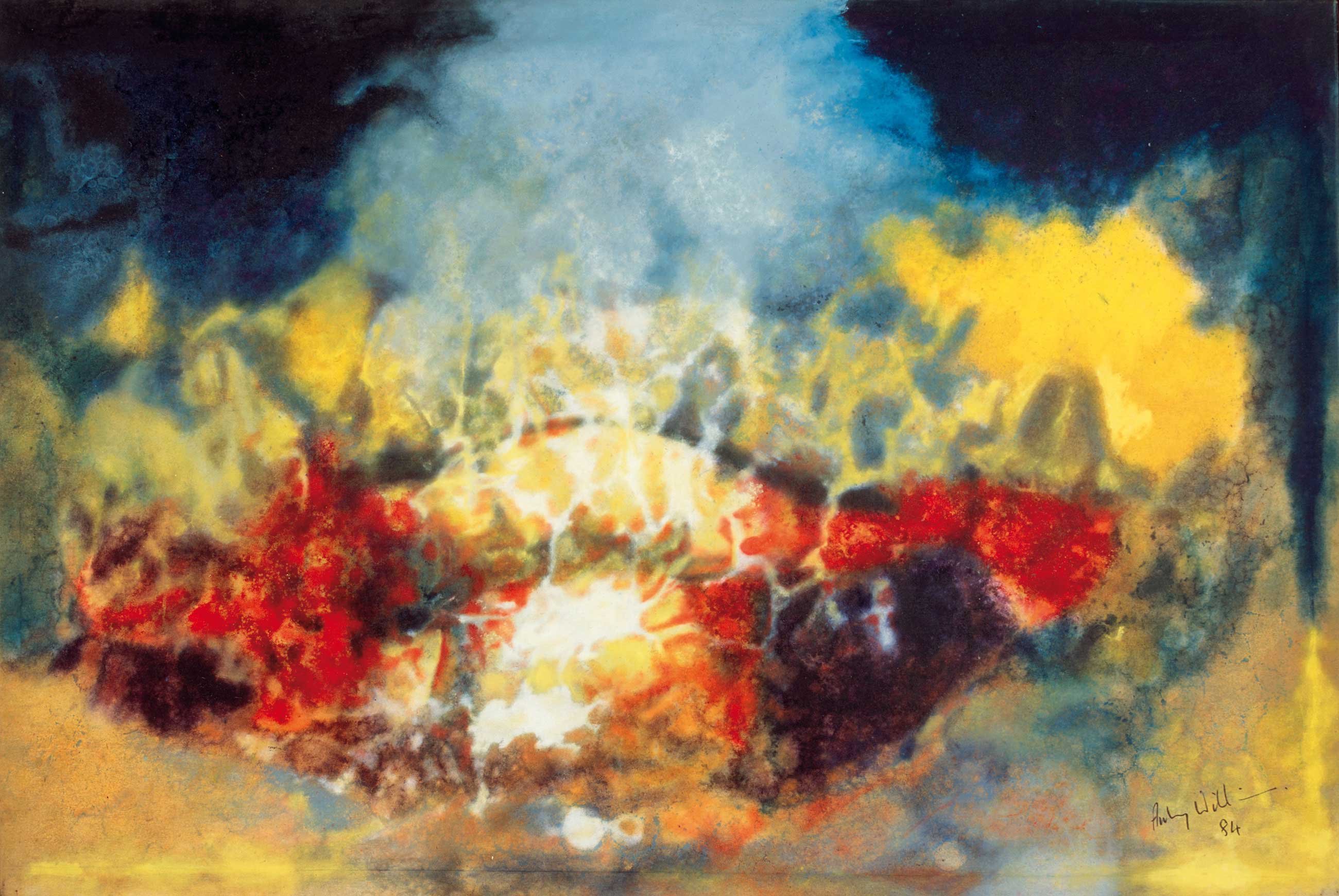 Through painting, Govinda Sah ‘Azad’ imagines a cosmos of boundless possibilities. A painter of tempestuous skies and cosmic explosions, Sah is drawn towards the unknown.