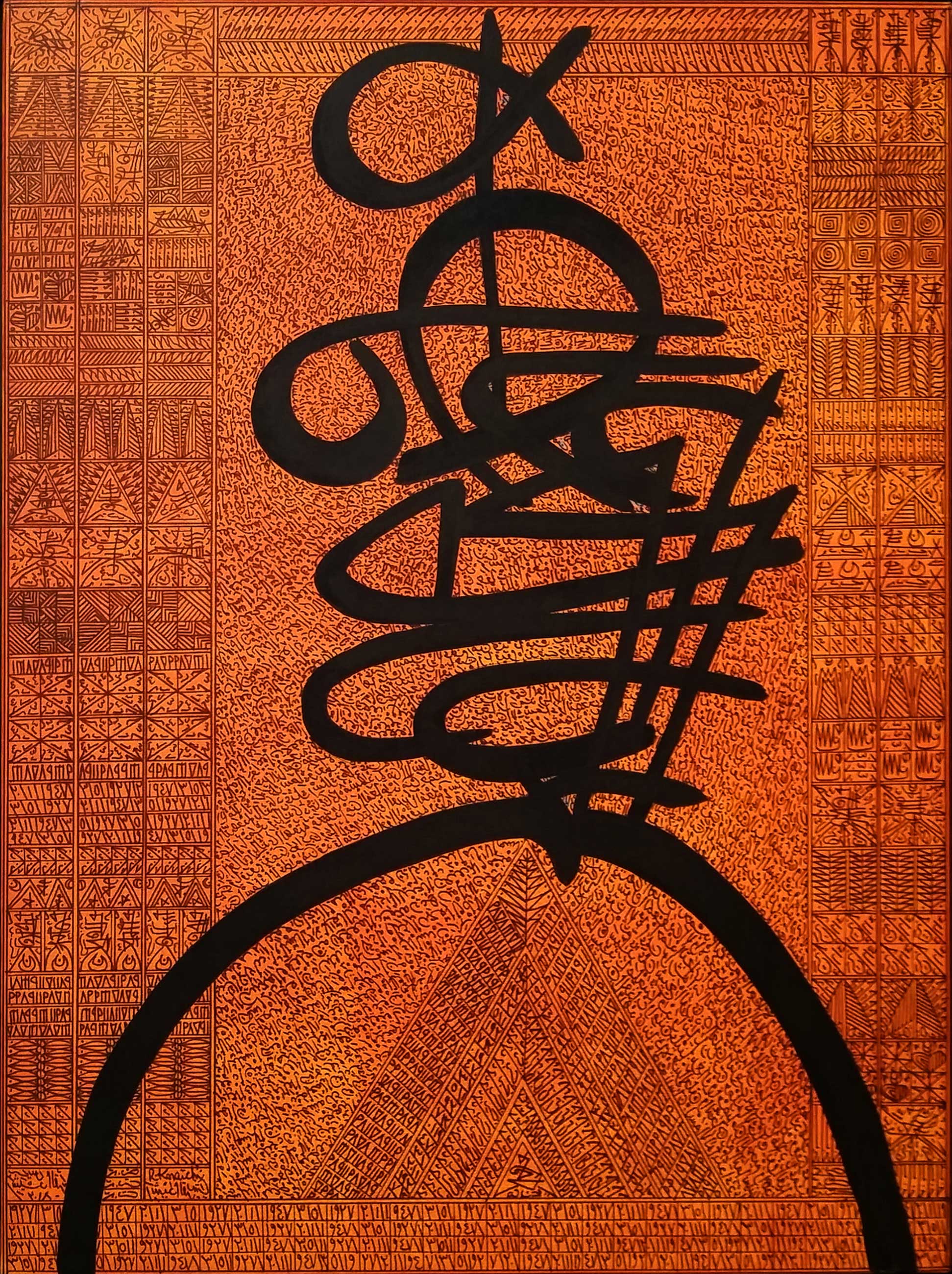 Patrick Joel Tatcheda Yonkeu (Born in 1985, Douala, Cameroon. Lives and works in Bologna, Italy.) works primarily as a painter, however his oeuvre also includes sculpture and installation. The artist studied Computer Science at the University of Dschang and Plastic Arts at Yaoundé I University before dedicating himself to art. Receiving a scholarship to study at the renowned Accademia di Belle Arti in Bologna, Patrick Joël completed his studies there in 2013 and went onto to obtain his MA Visual Arts in 2016. Whilst studying for his MA, his practice began to focus on the theme of ‘Zen in Art’. This interest in the metaphysical remains the basis of his practice seeking forms of spirituality better suited to contemporary times.