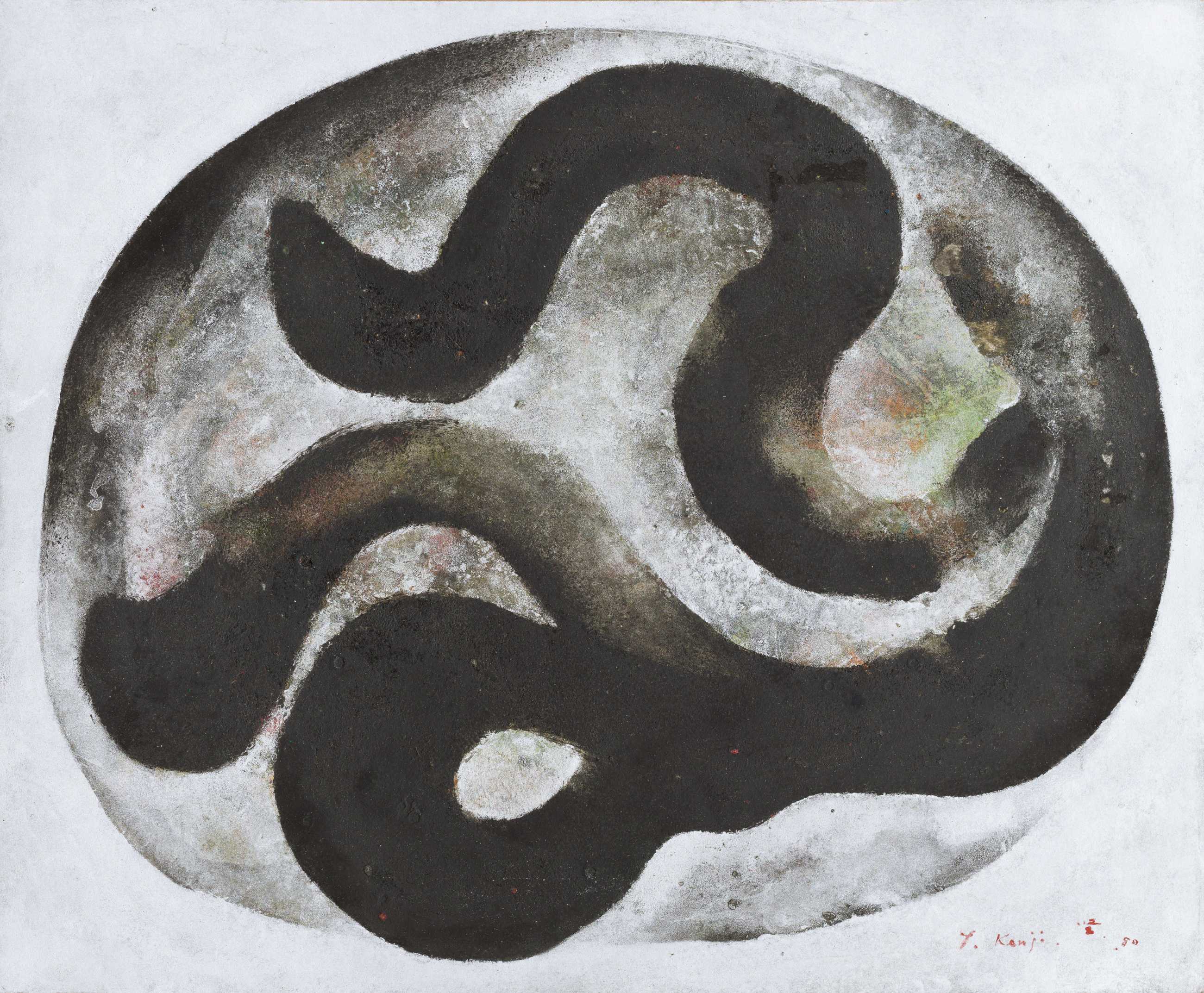 Employing this elliptical language of coloured forms, often rendered in dramatic silver and gold leaf, Yoshida invites the viewer to consider the fundamental forces of life and to meditate upon that essential unity which binds all living beings together. Nearly all of Yoshida’s later canvases bear the single recurring title of La Vie (Life); being a celebration of the cosmic mystery that is Life. Yoshida’s entire oeuvre expresses his keenest desire that Life be considered precious beyond price and its nemesis – War - be rejected absolutely.