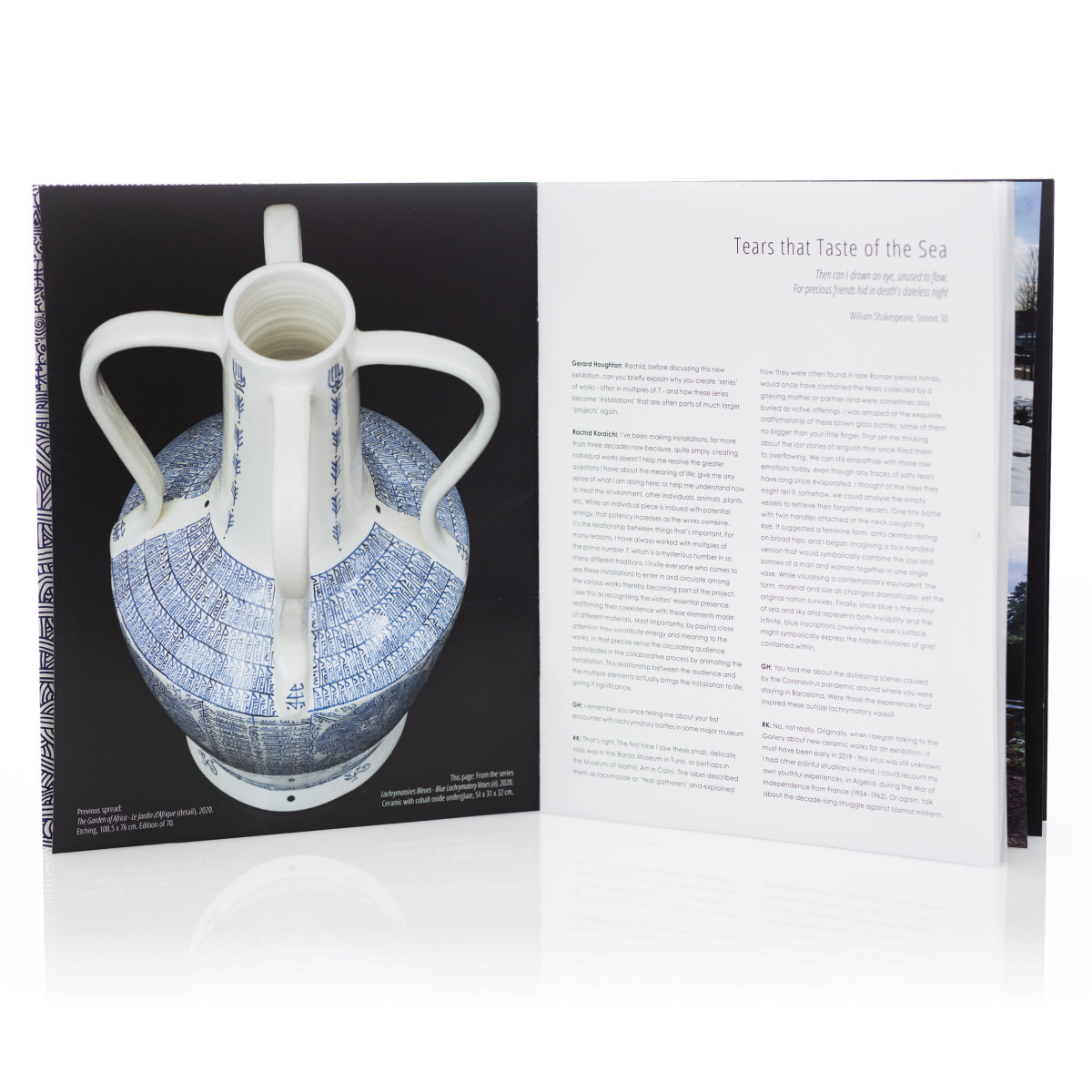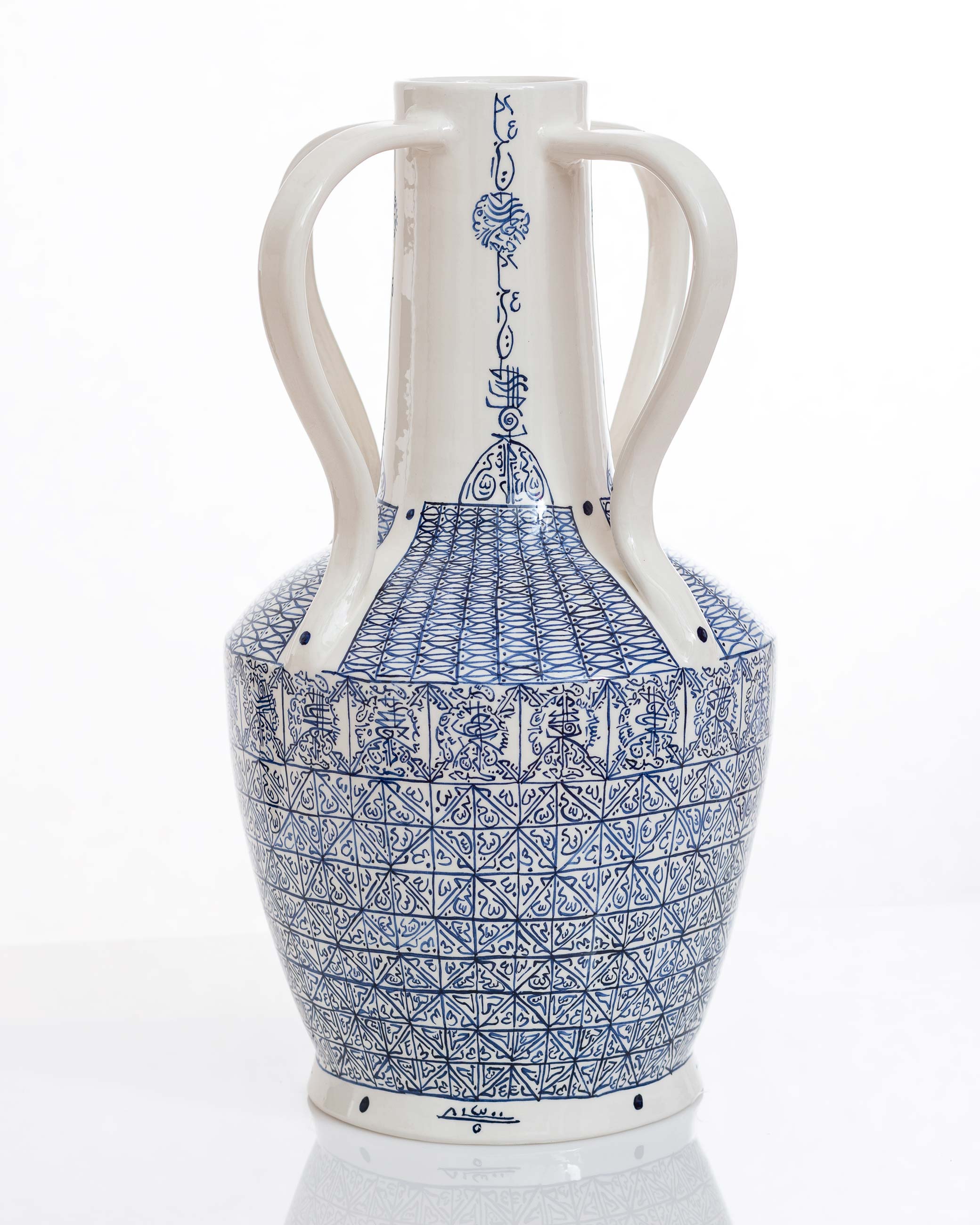 Rachid Koraïchi’s large-scale projects employ diverse elements commonly executed in widely divergent places, either in collaboration with practitioners of ancient, traditional crafts or employing sophisticated modern technological processes. Three poignant vases from Koraïchi's Lachrymatoires Bleues (2020) series, created under the intense conditions of pandemic ‘lockdown’ in Barcelona, will be on display.