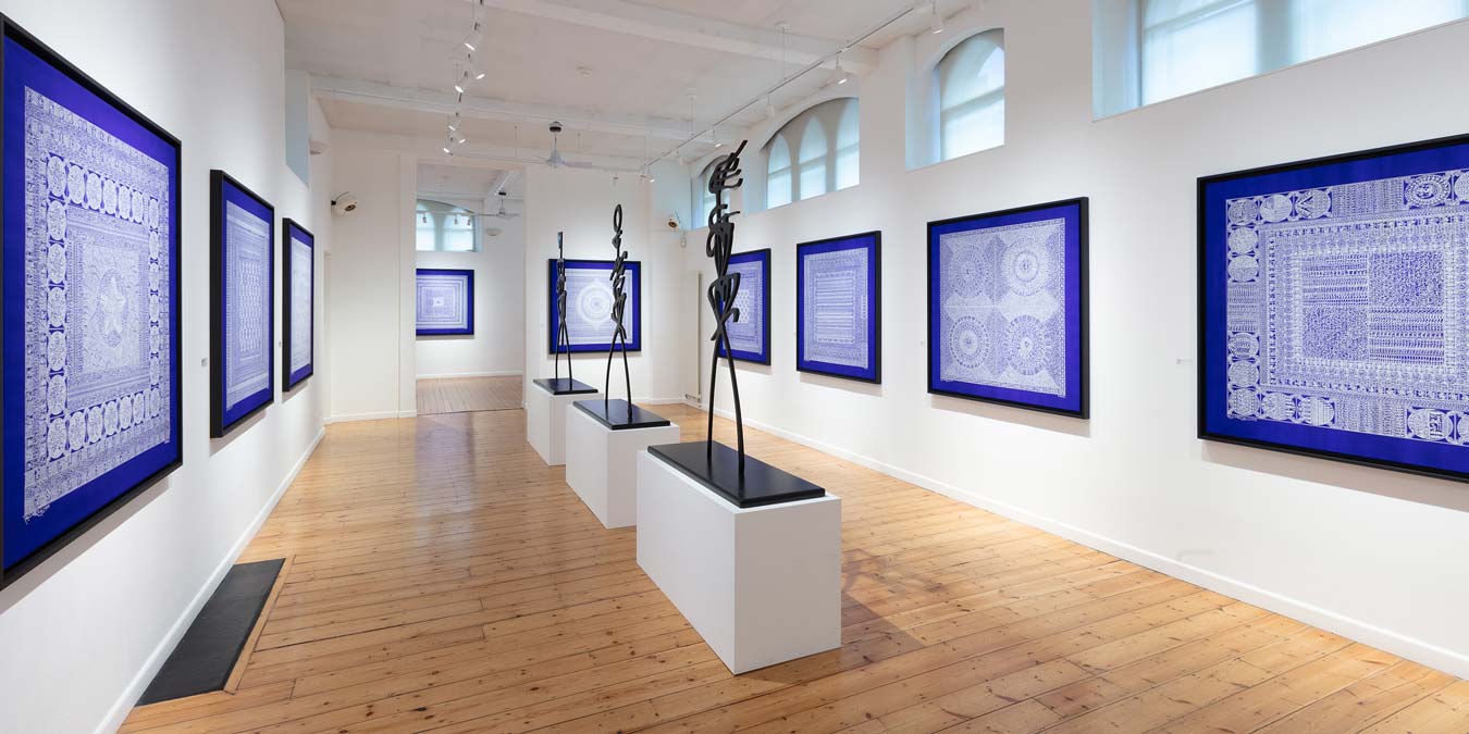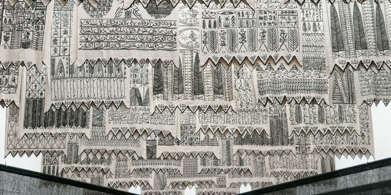 In 2011, seven of the 99 banners of The Invisible Masters (2010) won the prestigious Jameel Prize at the Victoria and Albert Museum, London, UK. This major installation was first shown in its entirety in The Future of Tradition - The Tradition of Future at Haus der Kunst, Munich, Germany, 2010. Koraichi’s works are part of major public collections such as the British Museum, London, UK; the Herbert F. Johnson Museum of Art, New York, USA; the Newark Museum, Newark, USA; the National Gallery, Amman, Jordan; the Miami Art Museum, Miami, USA; the Guggenheim, Abu Dhabi, UAE; Vatican Library, Rome, Italy and the Kiran Nadar Museum of Art, New Delhi, India.