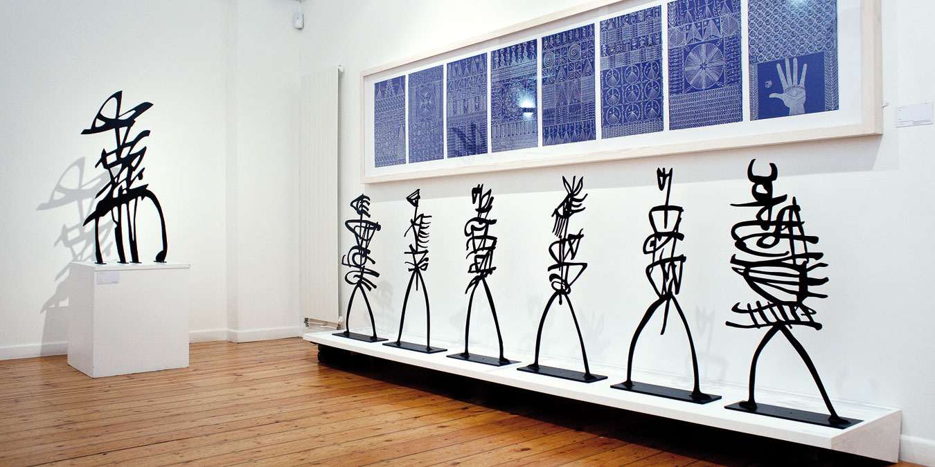 Rachid Koraïchi was born in Aïn Beïda, Algeria, in 1947, and now lives and works in Tunisia and France. He first studied at the Institute of Fine Arts and the Superior National School of the Arts in Algeria, before moving to France to continue his studies at the National School of Decorative Arts and the School of Urban Studies in Paris. Koraïchi’s work extends across an impressive range of materials which include ceramics, textiles, bronze, Corten steel, alabaster, print and etching on paper and paint on canvas. His work is influenced by a fascination with signs: symbols, glyphs and ciphers drawn from a variety of languages and cultures.